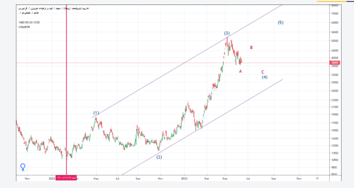 احتمال تشکیل یک سیکل پنج موجی جنبشی درنمودار وجود داردکه احتمال دارد در حال حاضر در موج A از موج چهارقرار داشته باشد درصورت تکمیل الگوی موج چهار انتظار رشد برای پایان سیکل جنبشی وجود دارد.