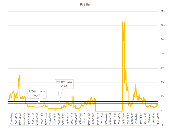 در نمودار روند تغییرP/Eسشرقاز عرضه اولیه تاکنون مورد بررسی قرار گرفته است.