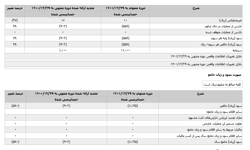 گزارش اطلاعات و صورت های مالی ۱۲ ماهه منتهی به ۱۴۰۱/۱۲/۲۹ (حسابرسی شده) شرکت تامین کالای کیسون منتشر شد.