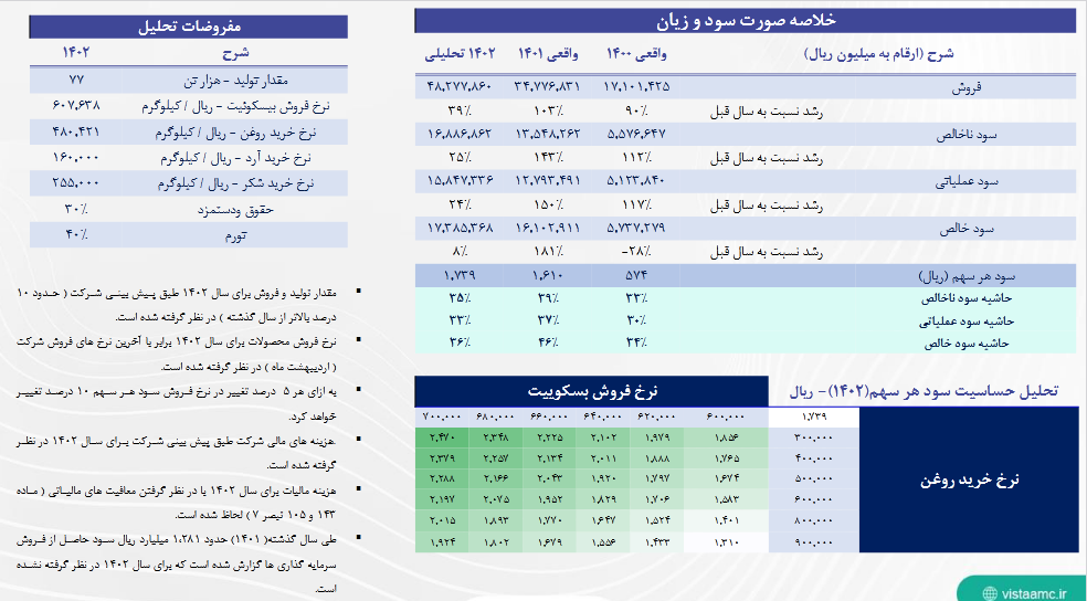سود هر سهم شرکت برای دوره مالی ۱۲ ماهه منتهی به ۱۴۰۲ مبلغ ۱۷۳۹ ریال است این رقم برای سال مالی منتهی به ۱۴۰۱ مبلغ ۱۶۱۰ ریال است.