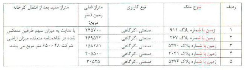 لیست اراضی شرکت با لحاظ کردن سهم شرکت بر اساس تفاهم نامه با شهرداری شیراز